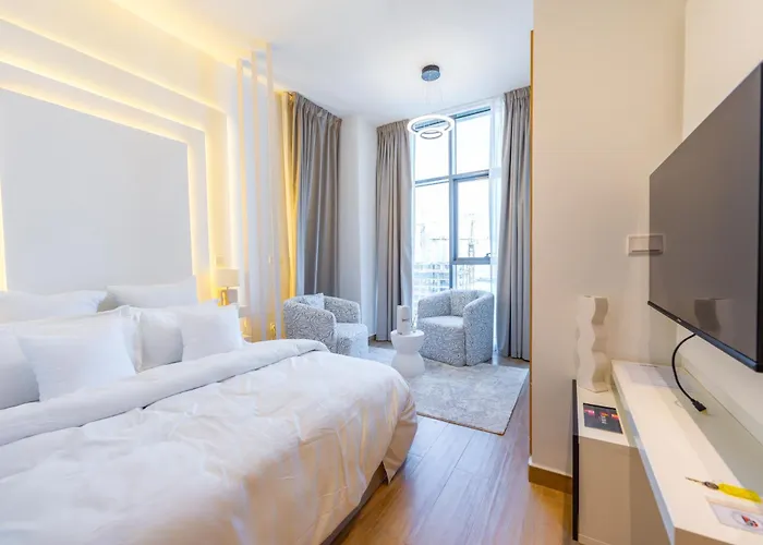 Disfruta de tus vacaciones en Dubái en el Le Villa-Joie !Bright Studio Apartment! Dubái. Ideal para quienes buscan una experiencia auténtica, está situado a 10 minutos en coche del jardín Miracle de Dubai y a una distancia de 4 km del Parque Al Barsha. Este apartamento de 32 m^2 también está equipado con comodidades como una plancha con tabla de planchar y servicio de planchado, una lavadora para garantizar la comodidad de los huéspedes.